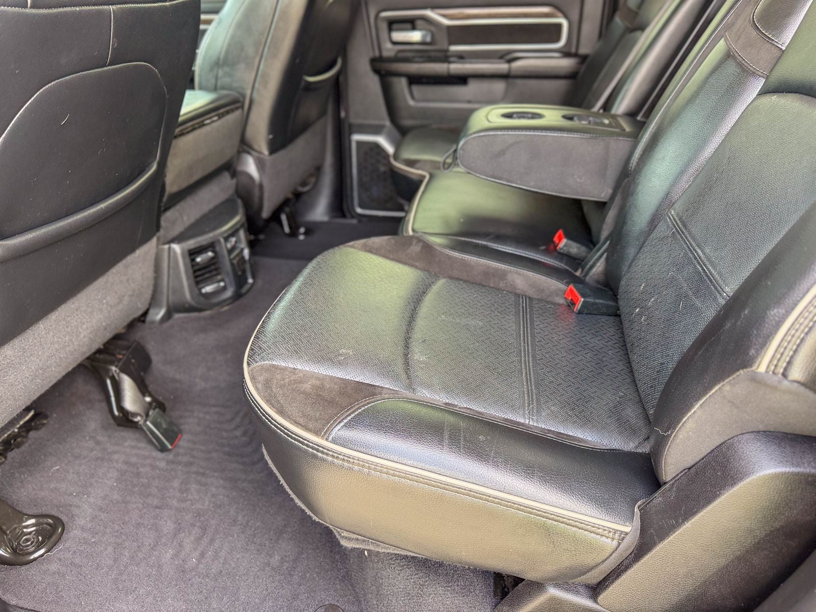 The safety features of this used Ram 2500 include front and rear parking sensors that assist with maneuvering in tight spaces, while 4-wheel ABS enhances braking control under various conditions. Emergency braking preparation adds an extra layer of safety in sudden stop scenarios, and the anti-lockout power door locks prevent accidental lock-ins. Auto-locking door locks increase security during travel, and brake drying helps keep brakes dry and effective in wet conditions, ensuring reliable stopping power when needed.