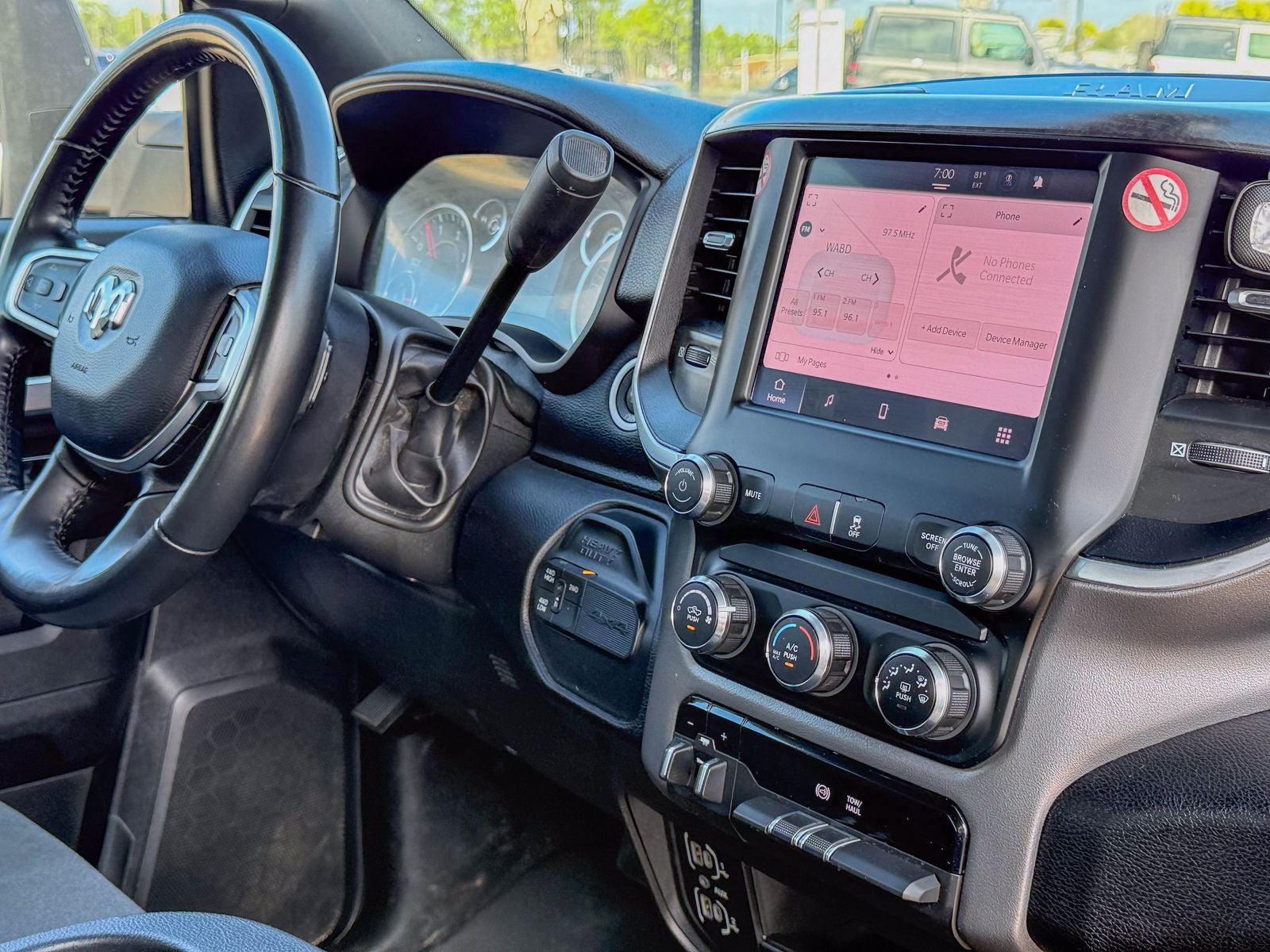 Performance is at the core of this Ram 3500, with a Class V trailer hitch designed for heavy loads and a 4WD selector with electronic hi-lo for optimal traction in varied conditions. The rear limited-slip differential enhances stability during towing or challenging terrain, and the part-time 4WD system offers versatility for off-road or slippery surfaces. This combination of features makes the truck capable of handling tough jobs and demanding drives with confidence.
